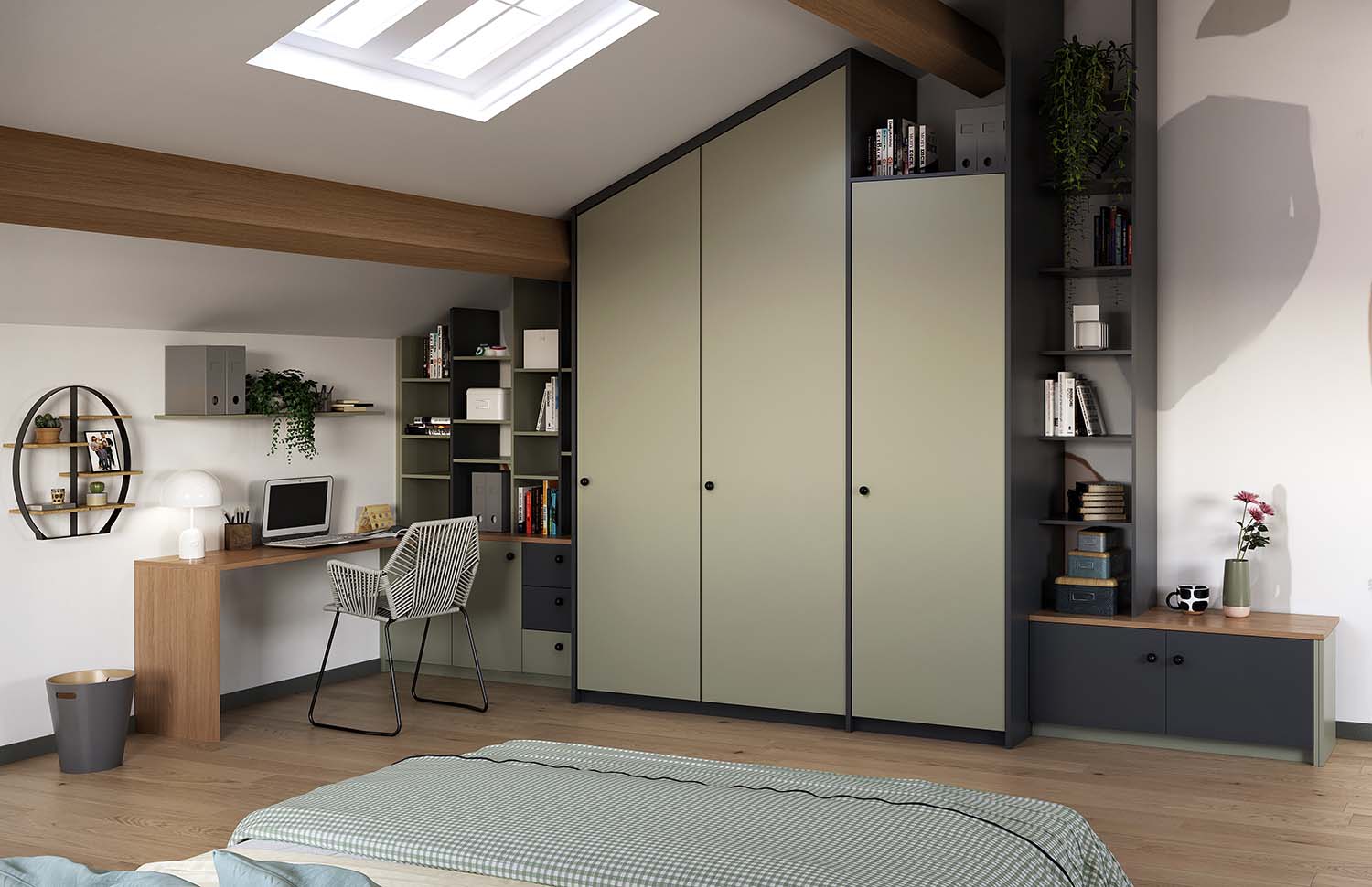 Un armario clásico, tan lleno de carácter como es, puede hacerte perder espacio debido a sus dimensiones estándar. Por el contrario, tenerlo hecho a medida permite aprovechar todo el espacio, desde el suelo hasta el techo, sin desperdiciar ni un milímetro. Un mueble diseñado según tus hábitos y tu forma de guardar, permite la adición de complementos y módulos que se correspondan con tu estilo de vida: baldas telescópicas, zapateros, armario doble, columna, cajones ... Según el diseñador elegido, puede integrar perfectamente en su decoración interior y convertirlo en una pieza insignia gracias a los acabados y al estilo de las puertas (batientes, correderas, pivotantes, abatibles).